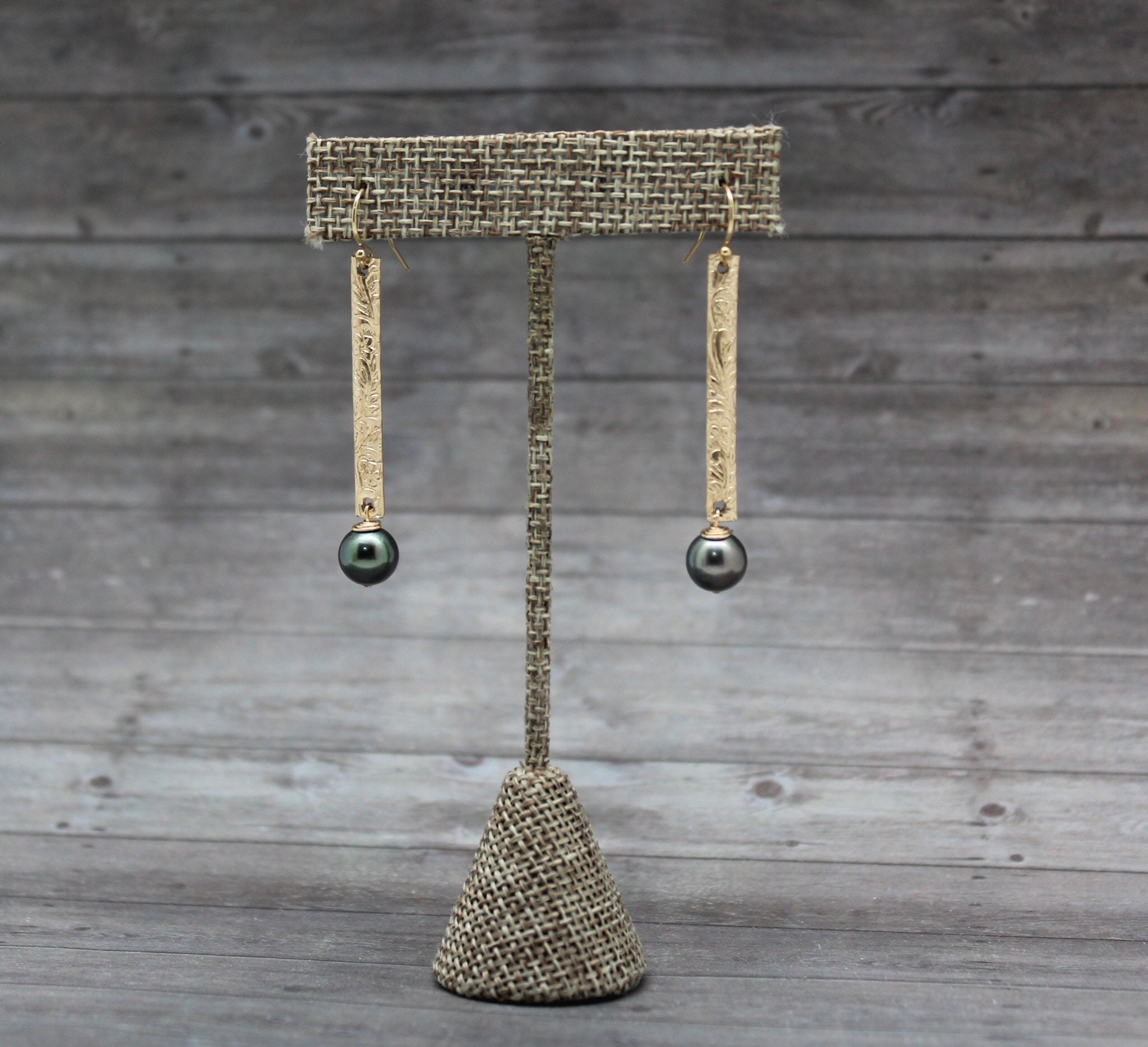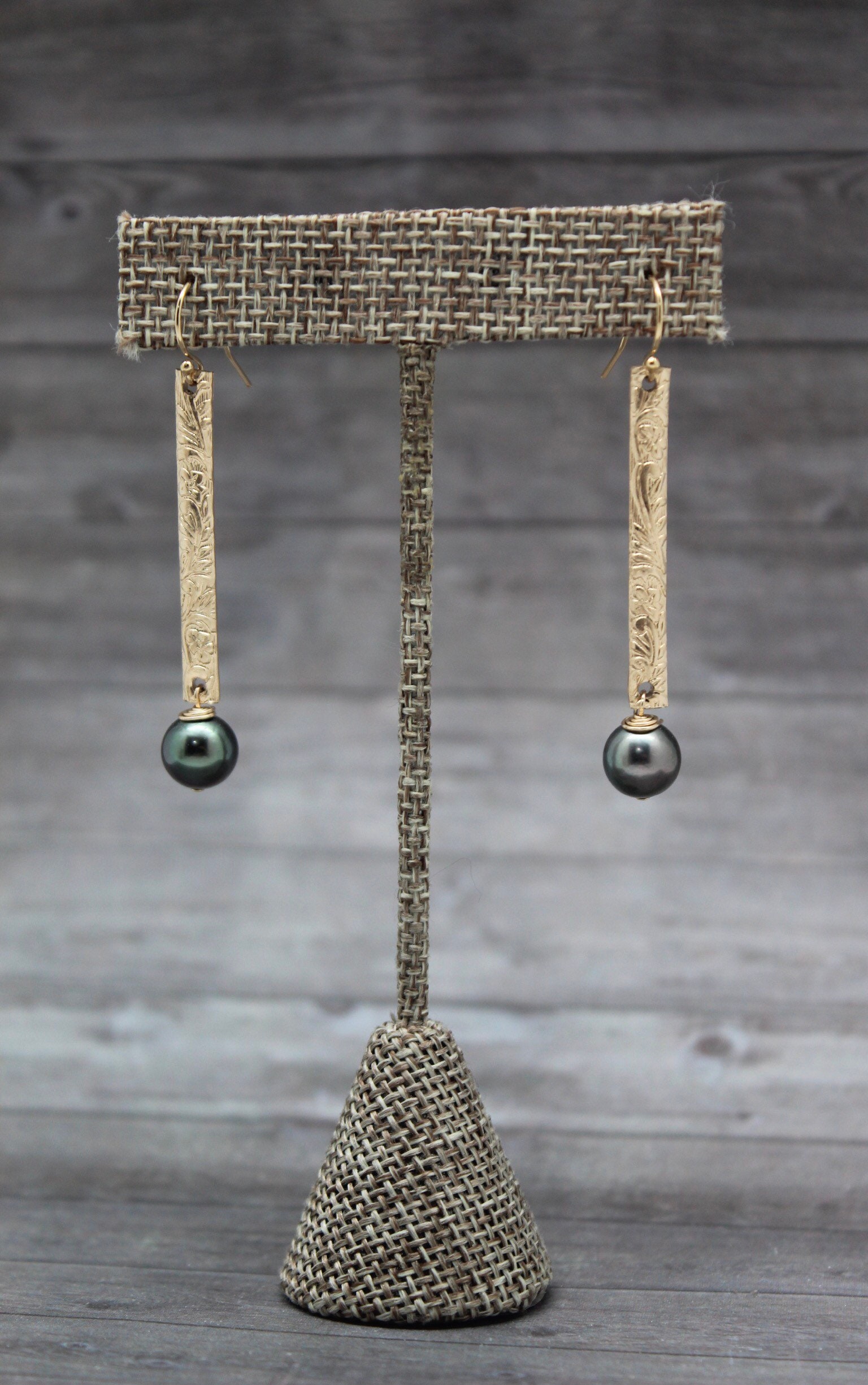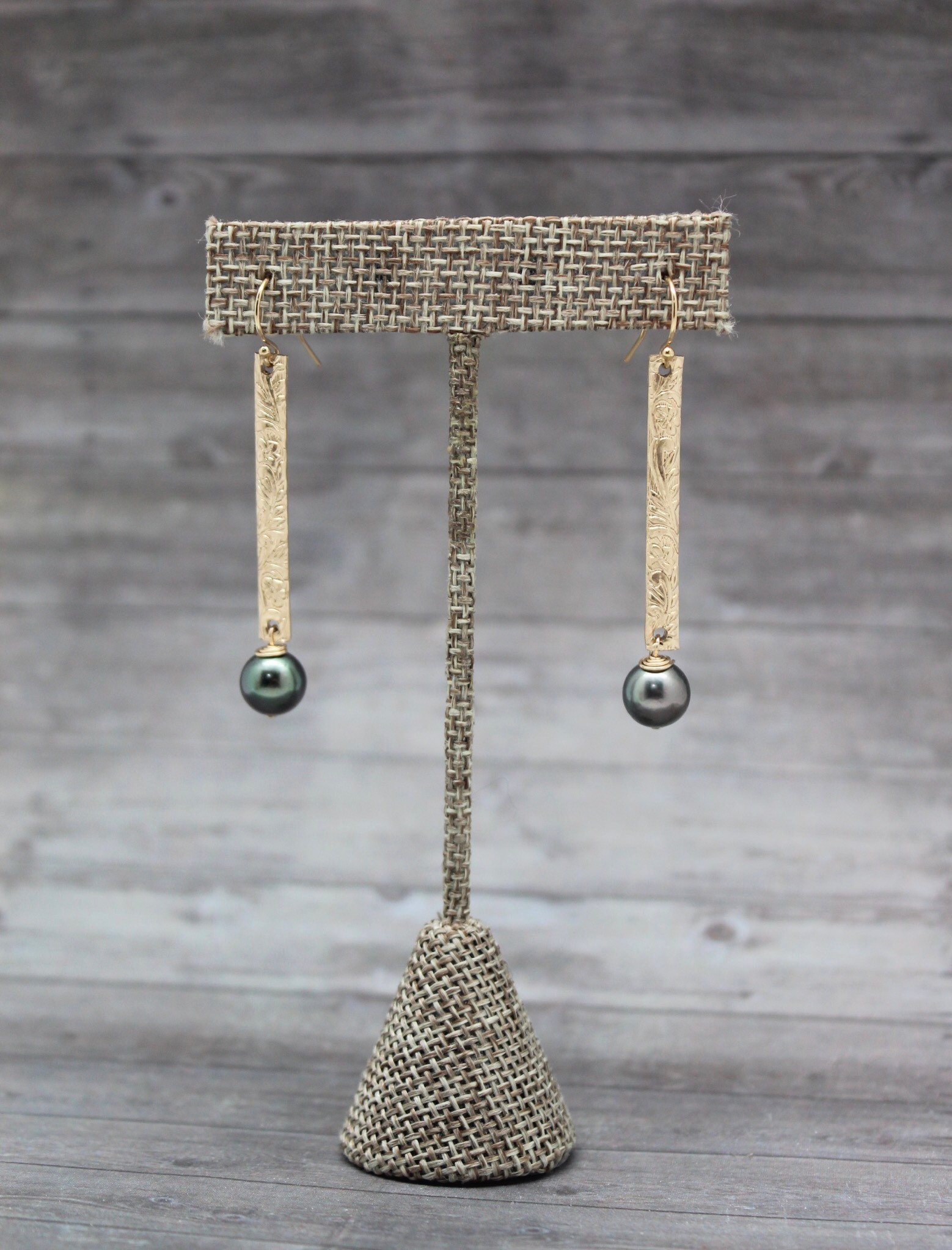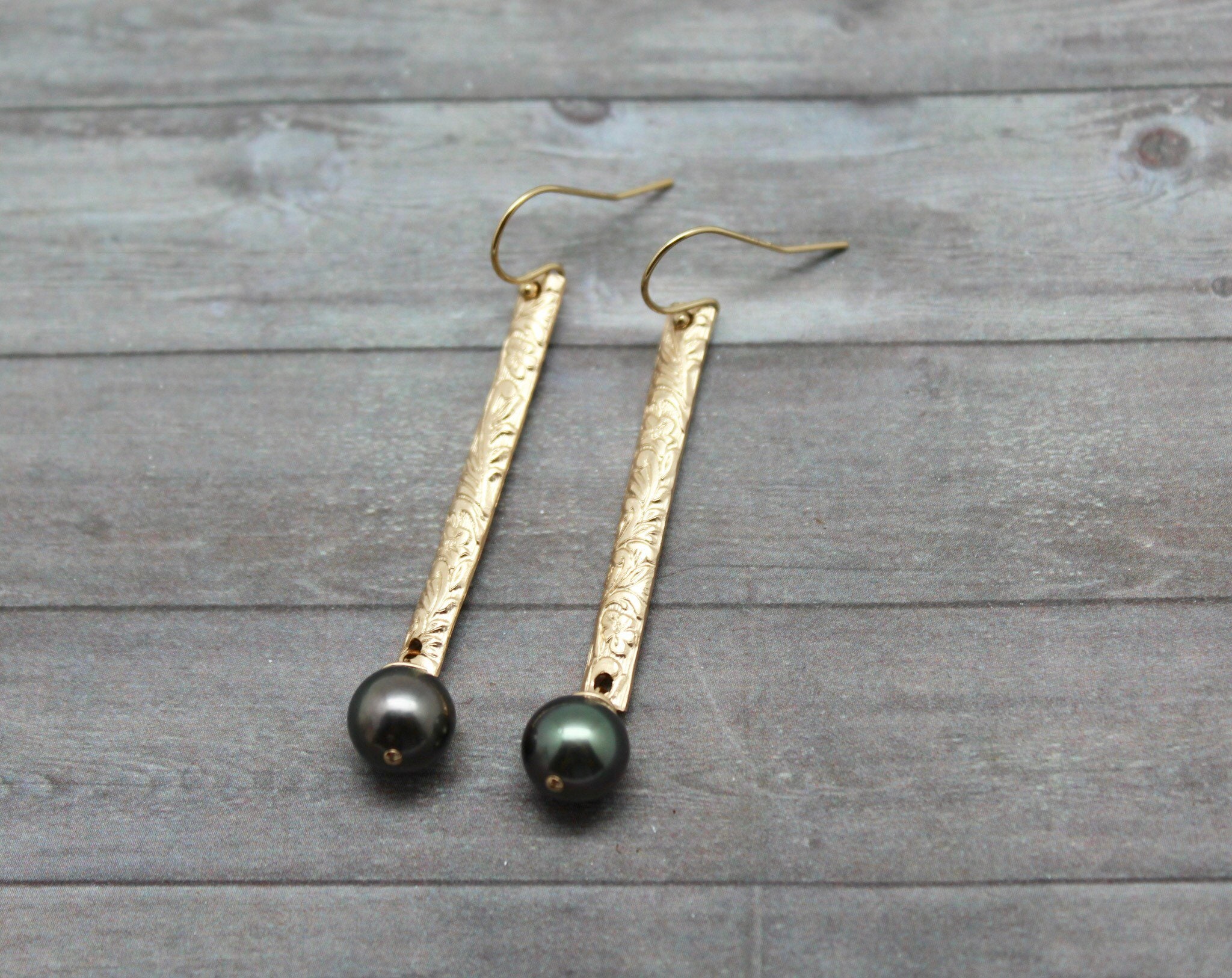 These 4mm Heirloom dangles feature two 9mm Tahitian pearl earrings. These earrings will hang just about two inches below your ear and are available in both Sterling Silver and 14k Gold fill. When purchasing please select your finish from the drop down menu.